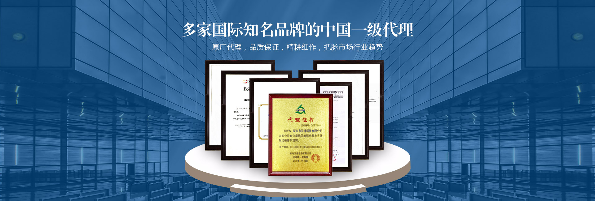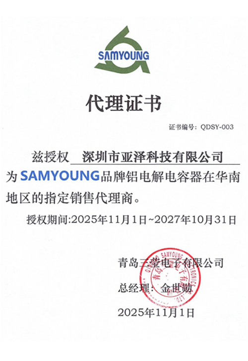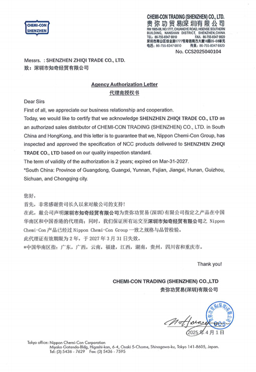 日本黑金剛(NIPPON CHEMI-CON)電容、韓國三瑩(SAMYOUNG)電容、東陽光(HEC)電容、凱美(KAMCAP)超級電容、成鎬薄膜電容、泰容薄膜電容、貝特保險管、大毅電阻、天二特殊電阻、CROWN散熱風扇等多家國內(nèi)外知名品牌一級代理及華南區(qū)域總代理授權(quán)。